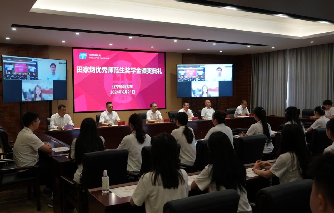 6月21日,我校在国际会议厅举行2024届田家炳优秀师范生奖学金颁奖典礼,田家炳基金会副总干事萧开廷、干事刘秀琼通过线上视频会议的方式“云端出席”,校党委副书记丛茂国、相关部门负责人及获奖学生代表参加了典礼活动。典礼由学生处副处长迟真主持。