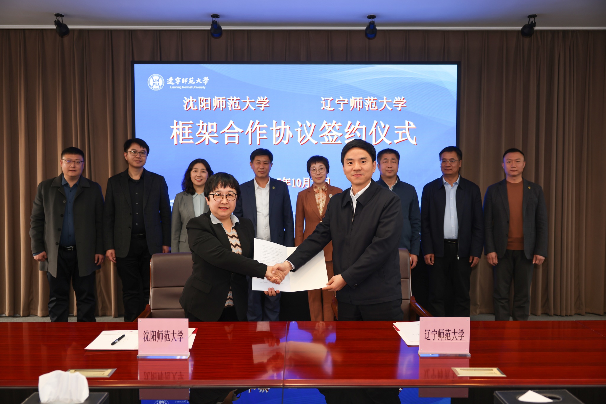 罗文波与杨松分别代表两校签署《辽宁师范大学与沈阳师范大学校际合作框架协议》,标志着两校正式建立长期稳定的战略合作关系,为后续合作落地奠定坚实基础。