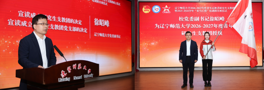 仪式上,校党委副书记徐昭峰宣读了《关于成立辽宁师范大学2026-2027年度青年志愿者研究生支教团的决定》以及《关于成立辽宁师范大学2026-2027年度青年志愿者研究生支教团党支部的决定》并为研究生支教团授旗。随后,校党委书记刘宏为研究生支教团党支部授牌。