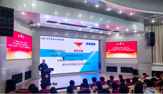 仪式结束后,新一届青年志愿者研究生支教团全体成员与团学骨干一起参加了2025-2026“青马工程”培训班的第一讲。校图书馆党总支书记、全民阅读教育研究院院长杨春宇以《青年马克思主义者与分级分众阅读》为题为全体学员授课。