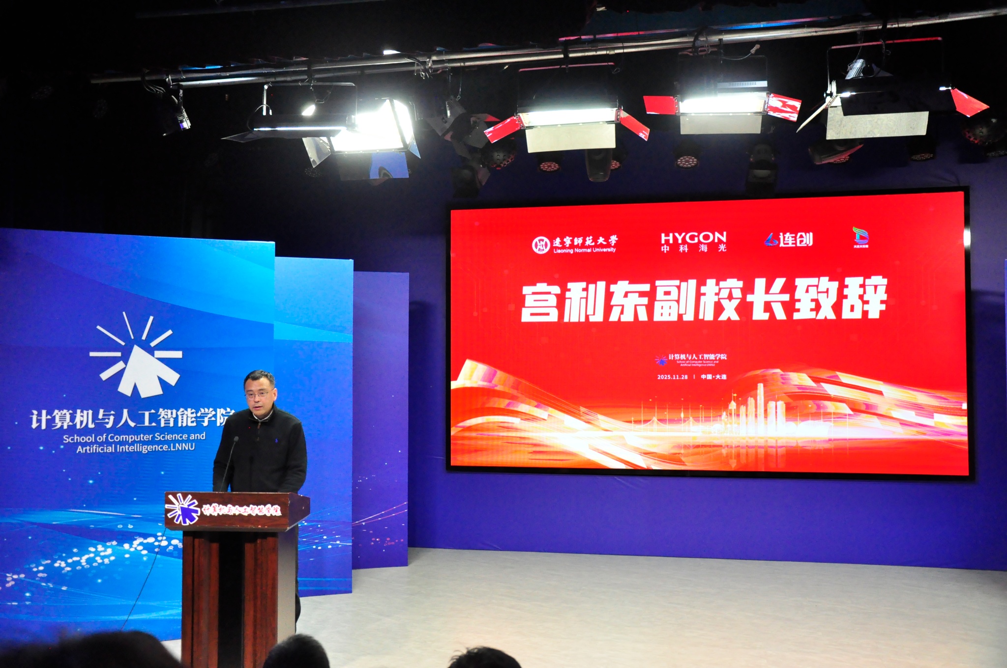 为深入贯彻落实国家新工科建设战略,推动教育链、人才链与产业链、创新链深度融合,着力培养面向智能时代的卓越工程人才,近日,计算机与人工智能学院成功举办“用‘芯’计算未来”国产算力进校园主题科技展。活动邀请西南财经大学天府学院低空经济产业学院副院长孔令辰、海光信息教育业务部东北大区经理杨晟、技术经理马瑞杰,以及大连大数据运营有限公司总经理高占普、大连国讯科技发展有限公司总经理宋顺铁等多位企业代表出席。辽宁师范大学副校长宫利东出席并致欢迎辞,学院领导班子成员及师生代表共同参加。活动由计算机与人工智能学院党委书记张丽杰主持。