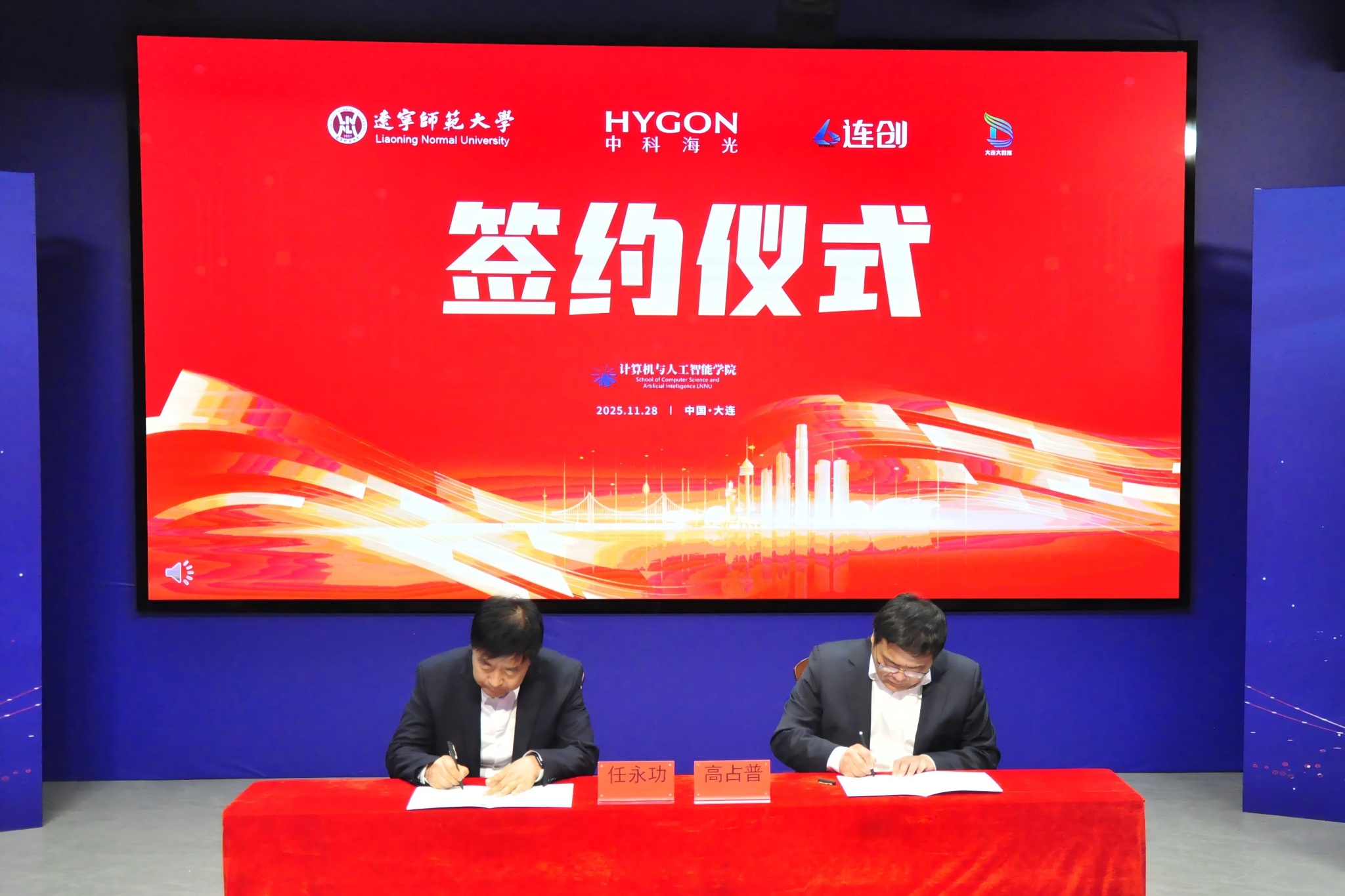 任永功院长与大连大数据运营有限公司总经理高占普共同签署了《智能物流数据建模与末端配送算法优化项目战略合作协议》。