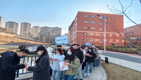 本次徒步路线经过精心设计,黄河路校区设置6个主题打卡点,西山湖校区设置5个主题打卡点。每一个站点,不仅是里程的标记,更是历史的回望与精神的加油站。师生们意气风发,步履铿锵,他们相互鼓励,携手前行,嘹亮的口号与欢歌笑语回荡在校园,充分展现了辽师研究生团结奋进、朝气蓬勃的昂扬风貌。