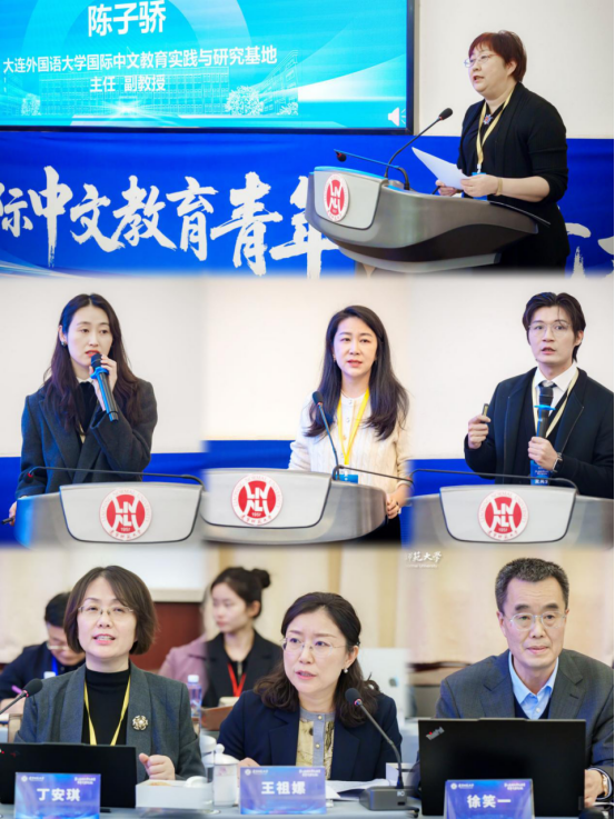 下午学术研讨,大连外国语大学国际中文教育实践与研究基地办公室主任陈子骄副教授担任主持。北京大学姜帅副研究员、北京外国语大学袁成雯讲师、辽宁师范大学夏禹圣讲师分别就汉语二语习得理论建构、职前国际中文教师思维模式动态追踪、基于语言类型学的“动趋式”习得研究作了专题报告。华东师范大学丁安琪教授、北京外国语大学王祖嫘副教授、辽宁师范大学徐笑一教授三位点评专家高度肯定了青年学者们的研究成果,一致认为这些研究紧扣国际中文教育学科发展的核心需求。专家们指出,当前研究正着力强化理论意识与创新,致力于从语言类型学等深层认知机制揭示习得规律,为教学实践提供坚实的学理支撑;同时,研究方法呈现多元化创新,如动态追踪等实证方法的引入,推动着研究范式的科学化转型,对教师培养等关键环节具有直接的实践指导价值。
