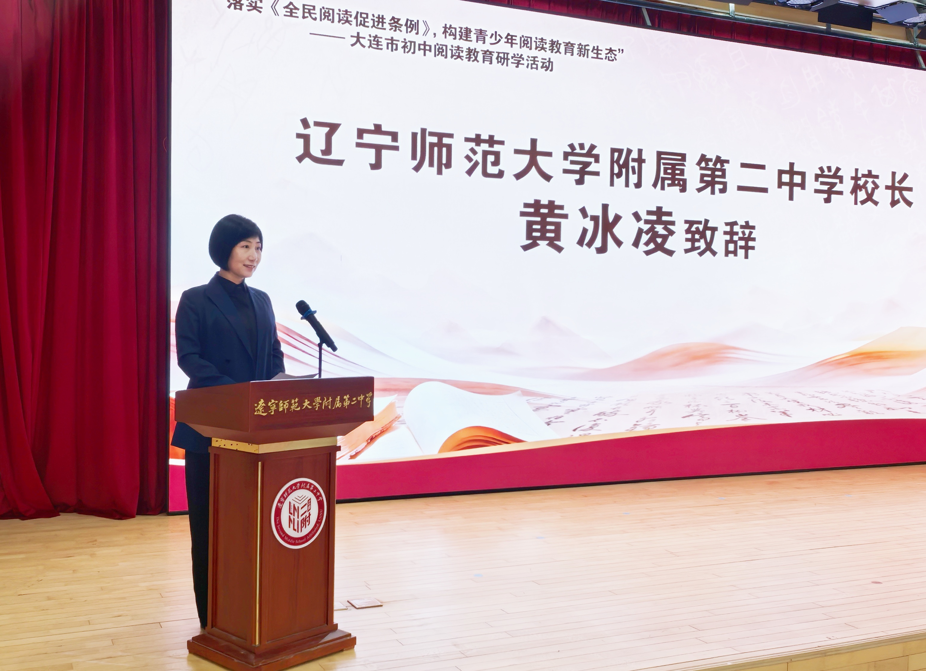 辽宁师范大学全民阅读教育研究院院长杨春宇、附属第二中学校长黄冰凌也分别致辞。杨春宇结合文化强国、教育强国建设目标,阐释了全民阅读作为“教育强基工程、文化铸魂工程”的重要价值,介绍了学校深耕全民阅读十余年的建设成果,表达了与全市教育界同仁携手深耕阅读教育的愿景。黄冰凌围绕学校“育文雅之生,办高雅之校”的办学理念,分享了学校以阅读赋能立德树人的实践成果,并表示将以本次活动为契机,持续夯实阅读教育根基,培育校园阅读文化新风尚。