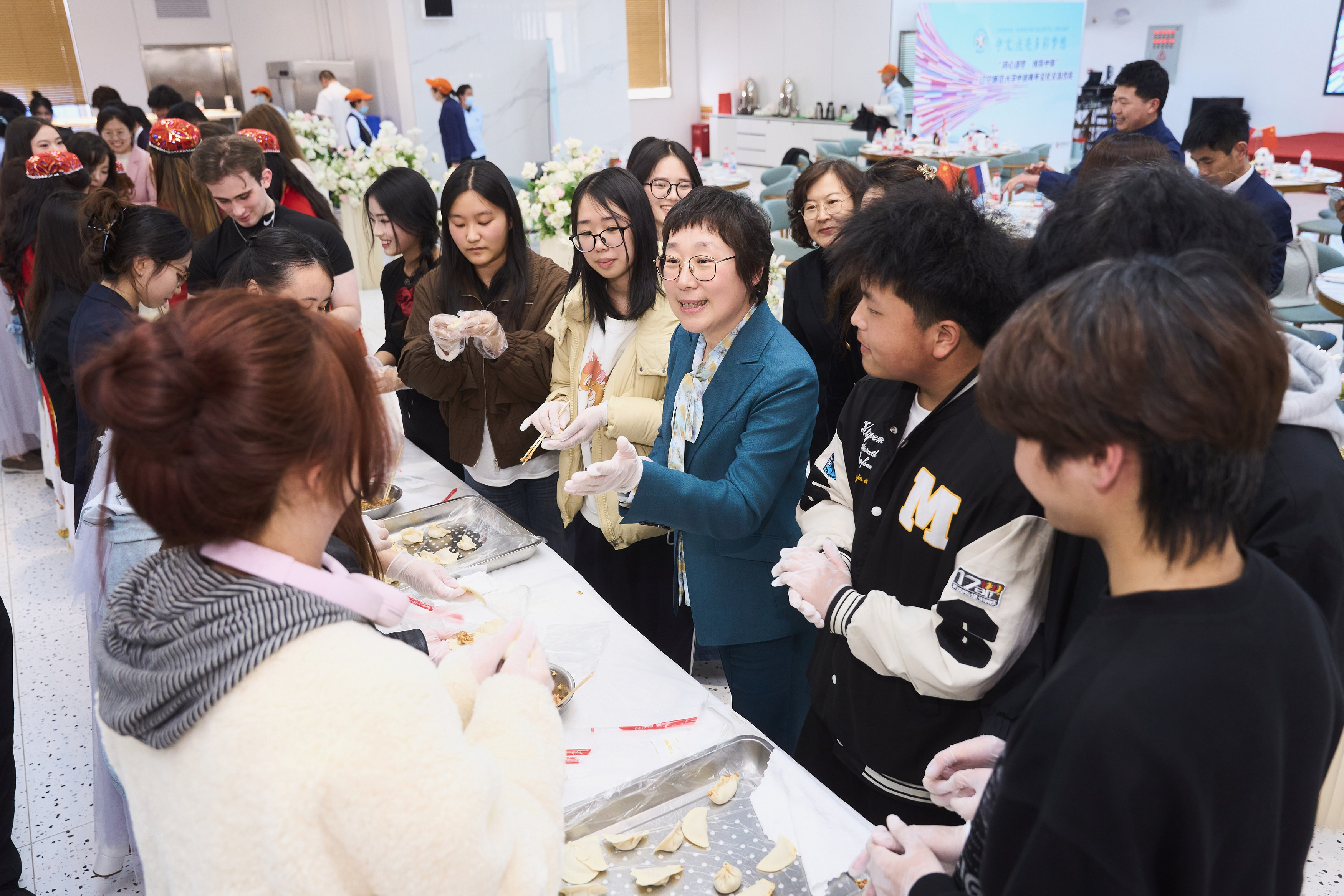 文化互动体验环节,中俄师生携手包饺子,大家分工协作、其乐融融,在动手实践中感受中华优秀传统文化的深厚底蕴,在协作交流中拉近彼此距离,用温情与默契为国际中文日、中俄教育年留下温暖而生动的印记。