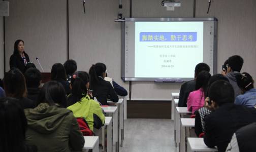 化学化工学院张澜萃教授做了关于“培养创新思维”的主题报告。结合自己多年来指导学生科研训练的经验,张教授对“大创项目”的实施提出了具体的建议和意见,同时,鼓励参与“大创项目”的学生应敏于观察、勤于思考、善于综合、勇于创新。