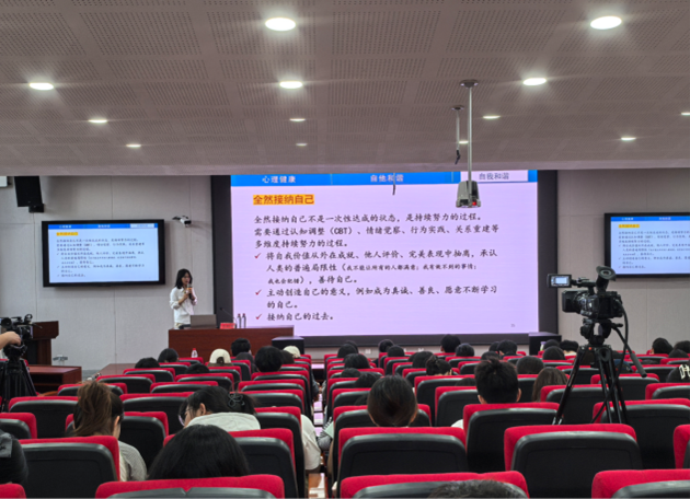 任桂琴从心理健康、自我和谐及人际和谐三个维度展开讲解。她强调,心理健康是学业与生活的基础,应做到勤于自助、善于求助、乐于助人,破除“独行”等封闭观念,建立以解决问题为导向的思维模式,学会与自我和他人和谐共处。