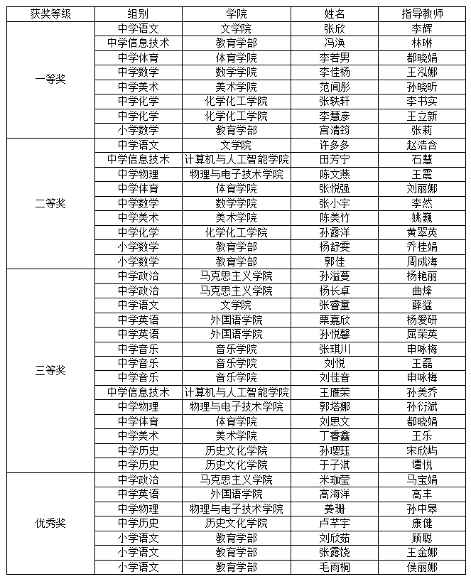辽宁师范大学2025年辽宁省高校本科师范生“同课异构”教学大赛获奖名单