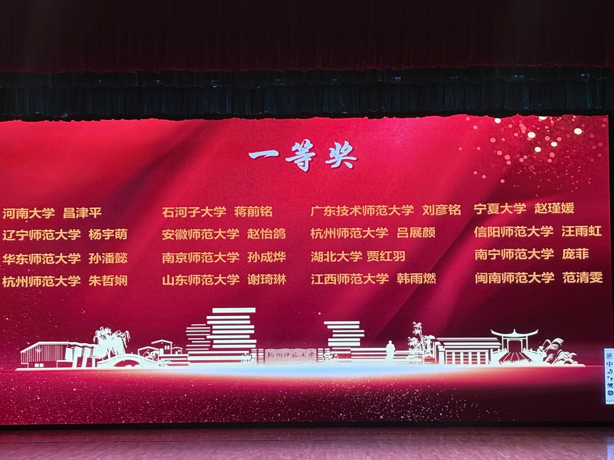 赛场上,各校选手全力以赴、各展风采。文学院学子沉着应战、精心展示,充分展现了辽师文学院研究生过硬的专业素养和良好的从师潜力,最终不负众望斩获佳绩,杨宇萌同学在李红梅老师的悉心指导下稳定发挥,夺得一等奖;付连宾同学在孙忠权老师的细致指导下稳步推进,斩获三等奖。