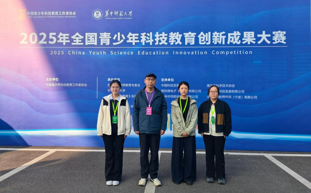近日,2025年全国青少年科技教育创新成果大赛决赛在华中师范大学圆满落幕,我校物理与电子技术学院教师洪许海指导的物理学(师范)专业本科生王翼飞、郭塔娜分获二等奖、三等奖,顾吉林指导的学科教学(物理)专业研究生詹卓琳获三等奖,洪许海、顾吉林荣获优秀指导教师称号。