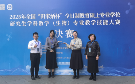 2025年全国“田家炳杯”全日制教育硕士专业学位研究生学科教学(生物)专业教学技能大赛决赛于11月在南京师范大学落下帷幕。我校生命科学学院2024级学科教学(生物)专业三位研究生全部晋级决赛,经过激烈角逐,郑芊奕、周炜贺获得二等奖,李怡梦获得三等奖;那杰、赵春晖两位老师获评赛事优秀指导教师奖。