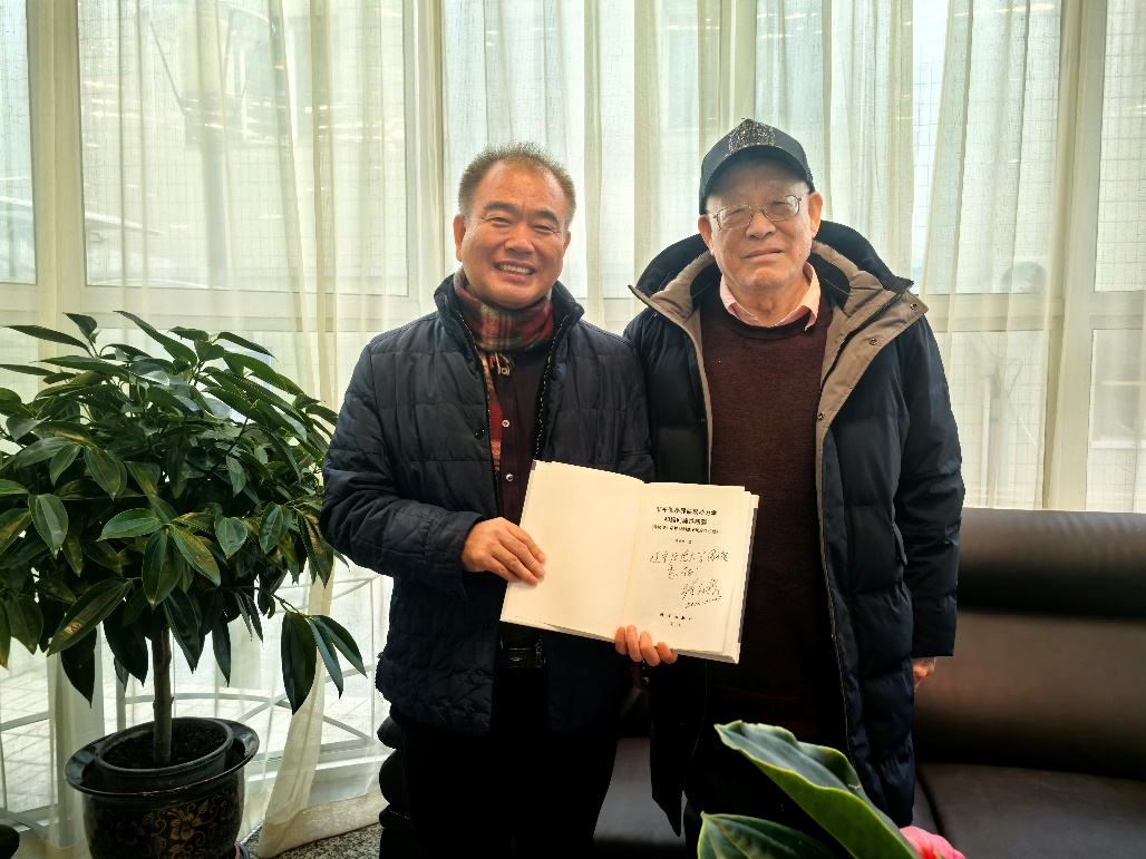 访谈尾声,徐庭栋教授向我校图书馆捐赠个人专著《非平衡晶界偏聚动力学和晶间脆性断裂》,杨春宇代表图书馆接受赠书并致以谢意。