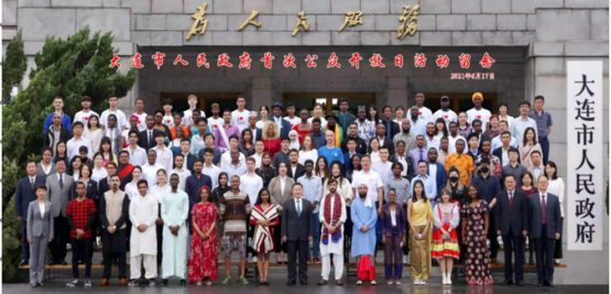 大连市市委副书记、市长陈绍旺热情接见了身着盛装的各国留学生,向留学生们致以热烈的欢迎。陈绍旺市长表示,希望外国留学生们在连学习期间能够深入认识中国、充分了解大连,成为中国故事的记录者、参与者和传播者,为推动中外文化交流做出自己的贡献。最后,陈绍旺等市政府领导与全体外国留学生在市政府大楼前合影留念。