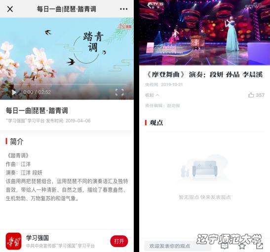 近日,音乐学院器乐教研室教师段妍、孙晶、李晨溪演奏的民族器乐作品《摩登舞曲》视频被《学习强国》平台采用播出,该曲由音乐学院2012届表演专业毕业生高群普改编创作。这是继今年4月段妍老师演奏的《踏青调》登上《学习强国》平台后,音乐学院青年教师演奏的民乐作品年内第二次被《学习强国》平台采用播出。