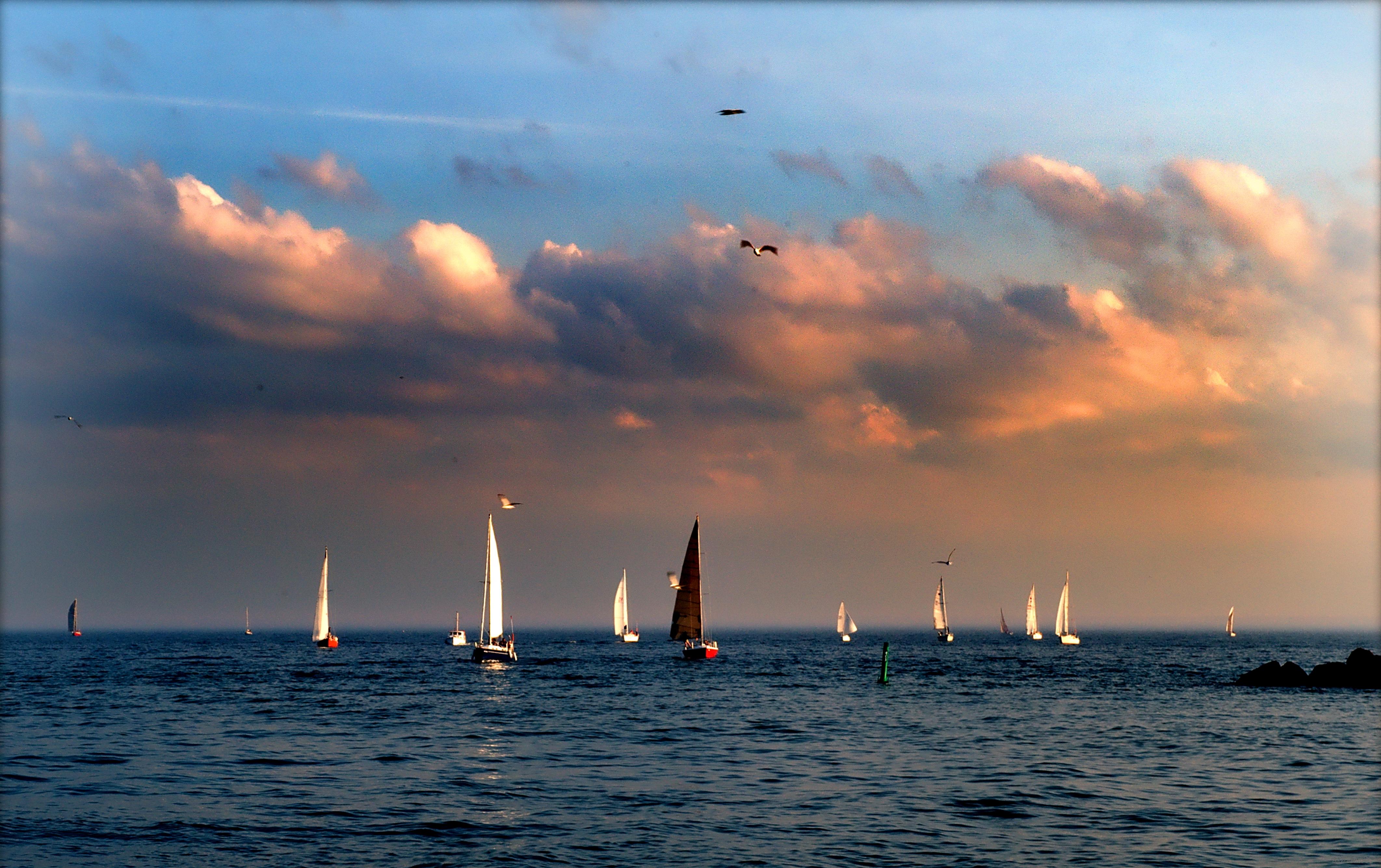《祥云帆影鸟伴行》田金柱(2014年加拿大安达咯湖拍摄)